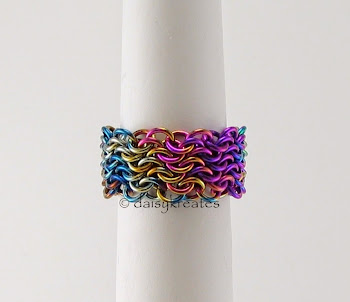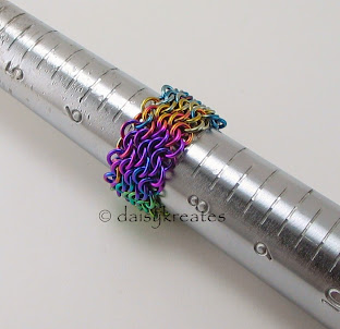 Oops Chainmaille Finger Ring in Rainbow Anodized Niobium